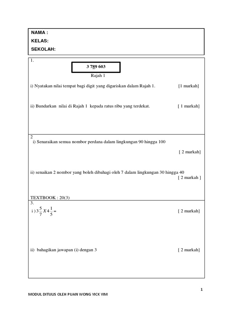 Soalan Latihan Matematik Tahun 6 Pdf